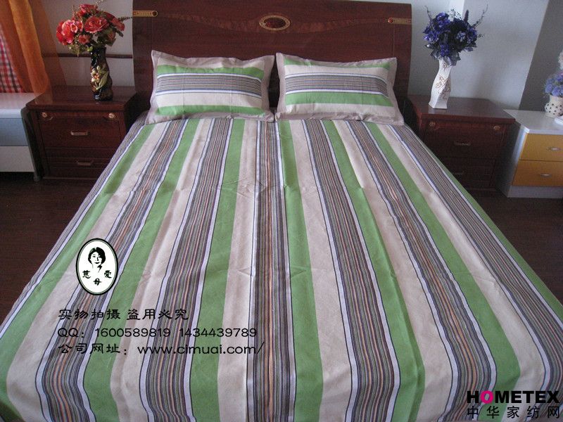 慈母愛涼席綠色天然、環(huán)保健康、主要原料是100%純棉線制成;不褪色、不易搓起、不起球、不卷邊;柔軟舒適,透氣吸汗,適用于貼身使用;吸附人體皮膚上的汗水和微汗,使體溫迅速恢復(fù)正常;鋪在床上高雅大方,現(xiàn)代時(shí)尚。