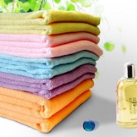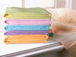 普通毛巾使用時,特別是天然纖維毛巾,將被擦物表面的灰塵、油脂、污垢等直接吸收到纖維內部,使用后殘留于纖維之中,不易清除,用了較長時間后甚至會變硬失去彈性,影響使用。而超細纖維毛巾是把污物吸附于纖維之間(而不是纖維內部),再加之纖維纖度高、密度大,因此吸附能力強,使用后只需用清水或稍加洗滌劑清洗即可