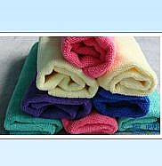 超細纖維毛巾直徑0.4μm的纖維細度僅為真絲1/10。由進口織機制成的經編毛巾布,其表面性狀為均勻、緊湊、柔軟、高彈的細微絨團,有極強的去污、吸水性能。對被擦拭表面無絲毫損傷,不產生棉織物常見的纖毛脫落;易洗、耐用,與傳統的純棉毛巾比較